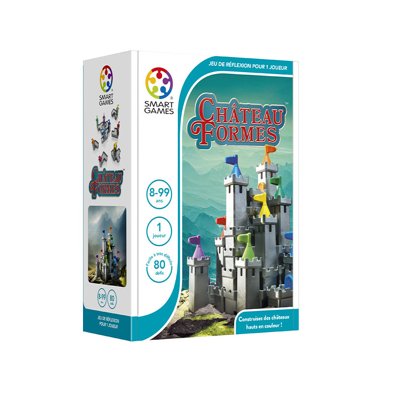 Placez maintenant toutes les pièces restantes AU-DESSUS de celles constituant les fondations. Le nombre de niveaux du château peut être supérieur à deux… ce que vous ne découvrirez qu’en trouvant la solution !