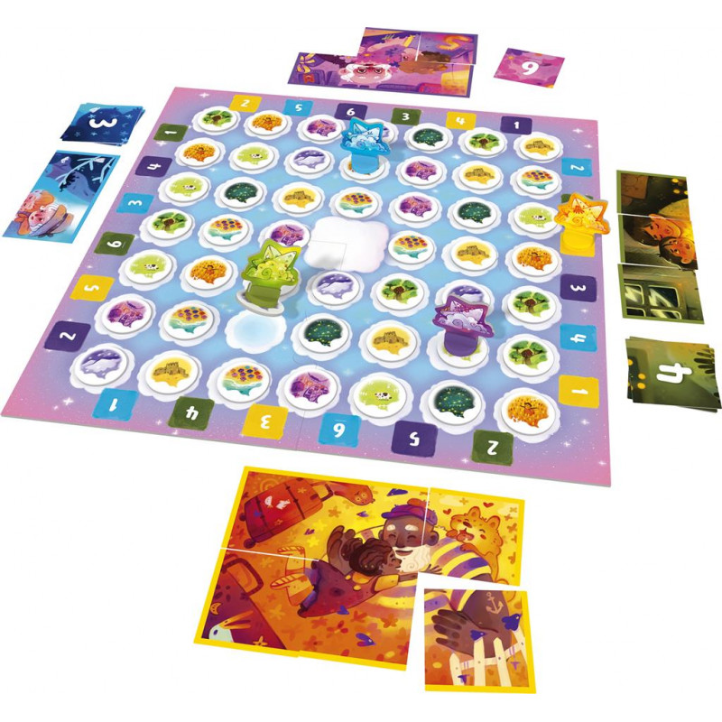 La mémoire de vos grands-parents leur joue des tours. Aidez les à reconstituer leurs plus beaux souvenirs. Récupérez les 6 morceaux de souvenirs répartis autour du plateau de jeu en déplaçant votre pion de nuage en nuage. Mais attention, certains nuages sont aimantés et vos gardent collés, interrompant votre tour !