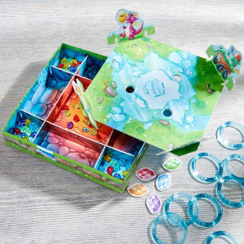 Avec l’aide de papa dragon, les joueurs retirent les anneaux gelés les uns après les autres et font fondre la colonne glacée. Voilà que les pierres étincelantes dégringolent ! Mais attention : ils ne peuvent pas tout ramasser. Qui aura le plus de pierres étincelantes à la fin de la partie ?
