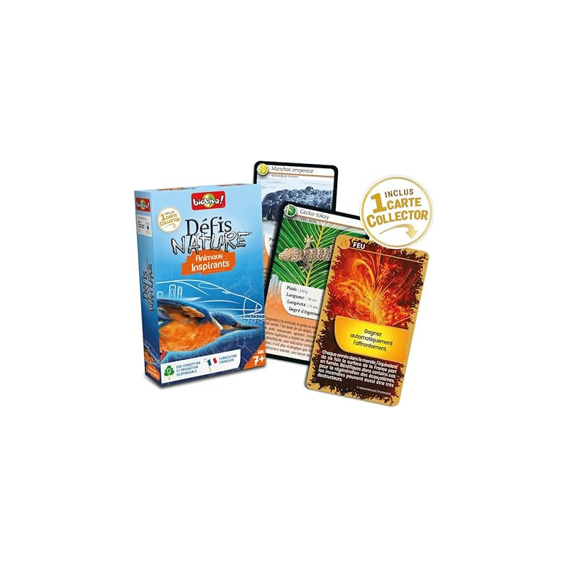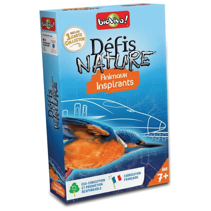Défis Nature - Animaux inspirants vous emmène à la rencontre des animaux qui inspirent les humains pour relever les enjeux de la transition écologique ! Découvrez les espèces à préserver, puis pariez sur les points forts de vos animaux pour collecter toutes les cartes du jeu et remporter la partie.