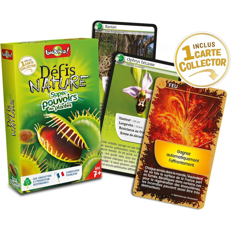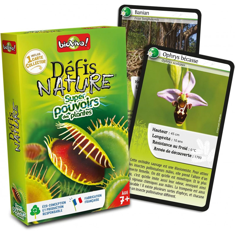 Défis Nature - Super pouvoirs des plantes vous emmène à la rencontre des plantes aux pouvoirs incroyables ! Découvrez les espèces à préserver, puis pariez sur les points forts de vos plantes pour collecter toutes les cartes du jeu et remporter la partie.
