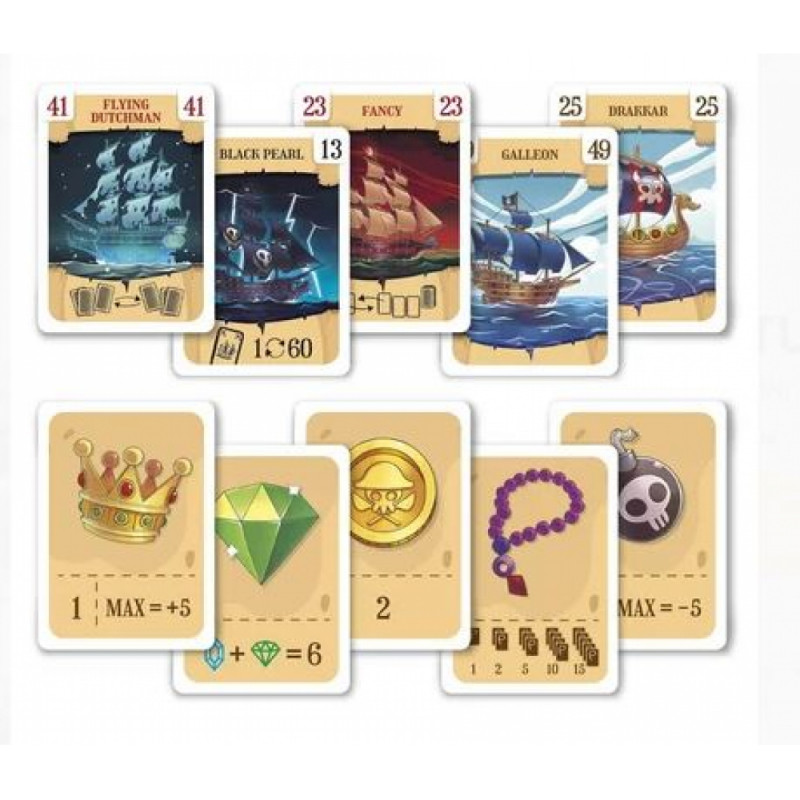 Contient 2 paquets de cartes illustrés avec des navires et des trésors pour défier des amis en conquérant autant de trésors que possible et en obtenant le meilleur score. Un jeu stimulant et amusant qui peut être transporté partout pour s'amuser entre amis et en famille. Un jeu de stratégie, d'interaction et de calcul.