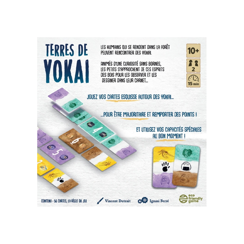 Dans ce jeu à 2 joueurs, observez des yokai, ces esprits de la nature, dans leur habitant pour compléter les meilleurs croquis. Jouez stratégiquement vos cartes autour des Yokai pour être majoritaire et remportez le maximum de points.