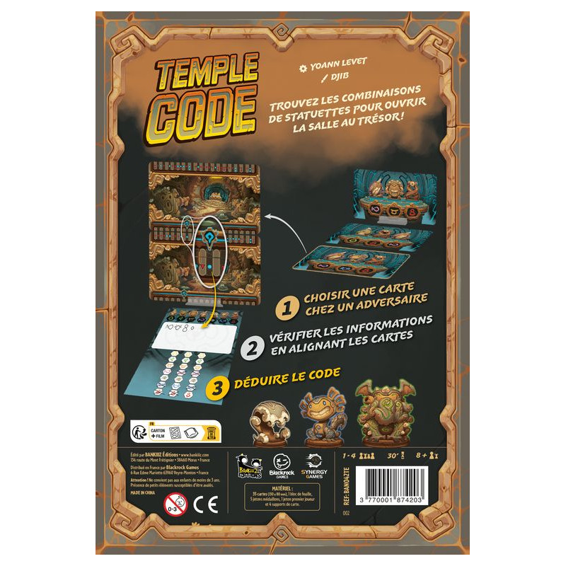 Vous devez trouver la combinaison de statuettes sur la carte devant vous. Pour cela, utilisez les cartes devant vos adversaires pour obtenir des informations, en faisant attention de ne pas trop les aider ! Un joueur peut déclarer sa combinaison à tout moment, donc n'attendez pas trop !