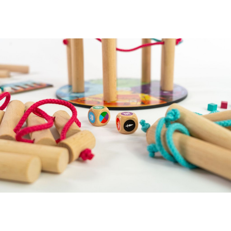Nekojima est un jeu d’adresse en bois dans lequel il faudra maintenir en équilibre des poteaux électriques en respectant les emplacements sans qu’aucun câble ne se touche.