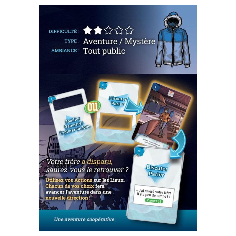 Découvrez la première aventure de la gamme BACKSTORIES, avec ce premier volet intitulé Seule sous la Glace ! Backstories est un jeu à la mécanique aussi simple que révolutionnaire : un peu à la manière des jeux vidéo Point and Clic, interagissez avec votre environnement pour avancer dans votre palpitante aventure.