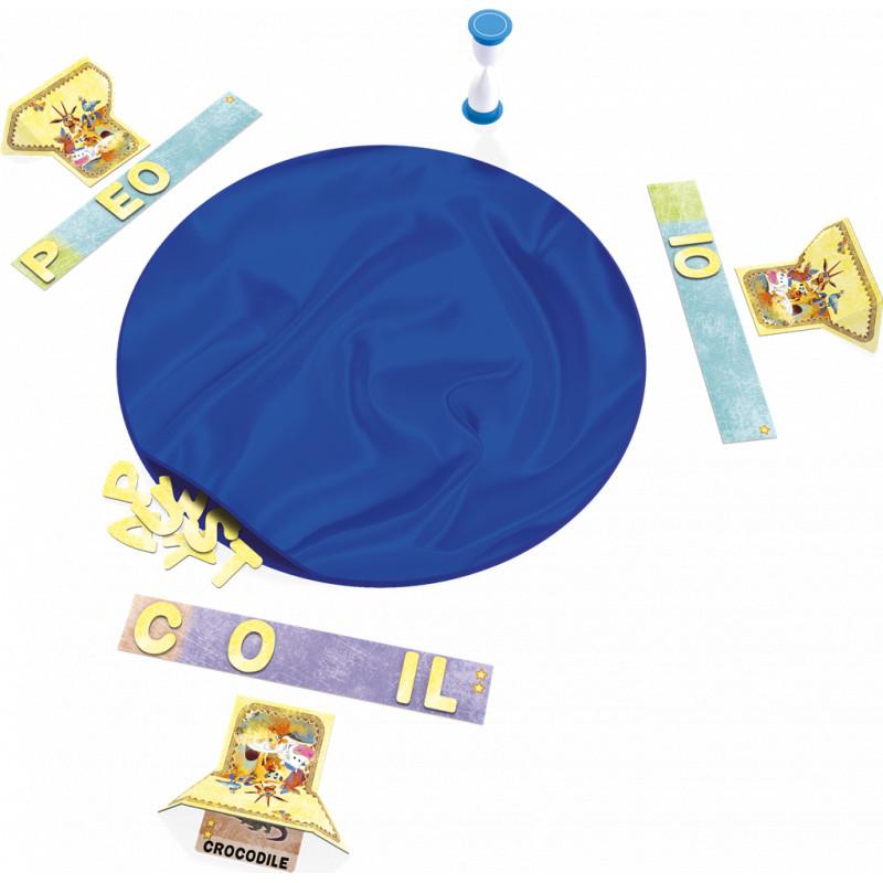À chaque manche, piochez une carte Animal facile ou difficile, que vous devrez faire deviner. Pour cela, au signal, tous les joueurs plongent la main dans le sac et essayent de trouver des lettres, grâce à leur sens du toucher, pour compléter au maximum le nom de leur animal. Au top, c’est fini, tout le monde retire sa main et réagence au mieux ses lettres sur son plateau. Ensuite, animal par animal, les autres joueurs doivent deviner quel animal le joueur tentait de reconstituer. Chaque réussite permet d’acculer des étoiles.
