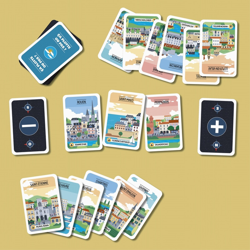 Contenu du jeu : 114 cartes Villes, 7 catégories, 2 cartes d'indication (+ et -), 1 règle de jeu