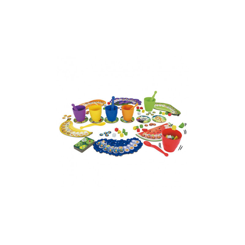 Un jeu familial où vous devenez chef cuisinier préparant des salades de fruits selon les caprices du roi. En alliant observation, rapidité, réflexion, et dextérité, chaque joueur tente de satisfaire les cartes objectifs. Avec des gobelets colorés, des cuillères, et des cartes de recettes, ce jeu divertissant ravit les joueurs de tous les âges.