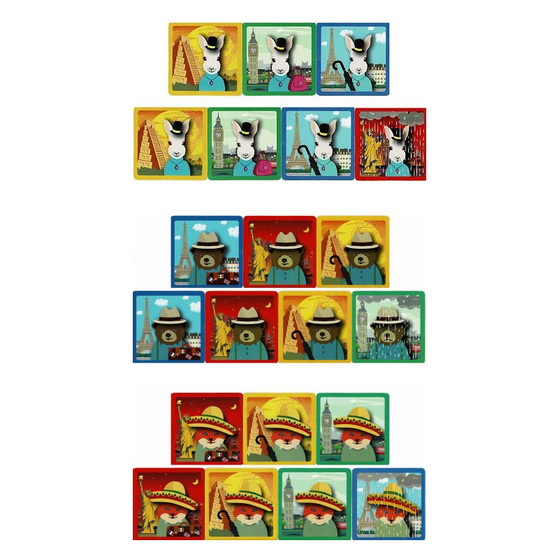 Tes 3 amis voyagent seuls ou ensemble aux quatre coins du monde . Sois le plus rapide à trouver le maximum de combinaisons gagnantes de 3 cartes !