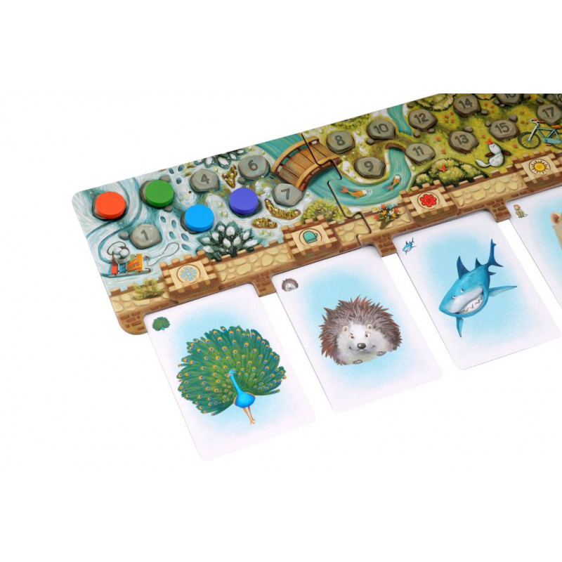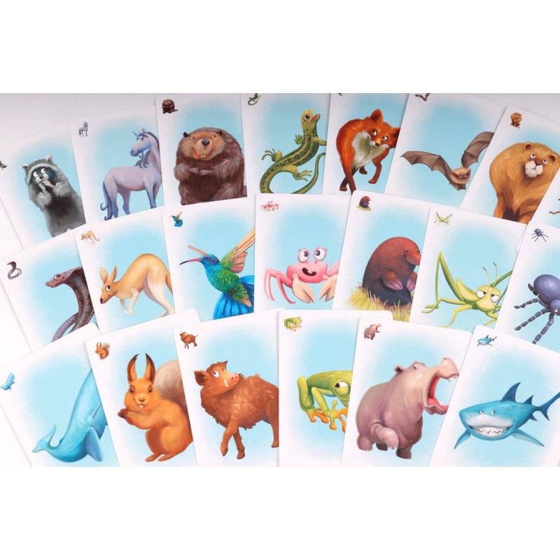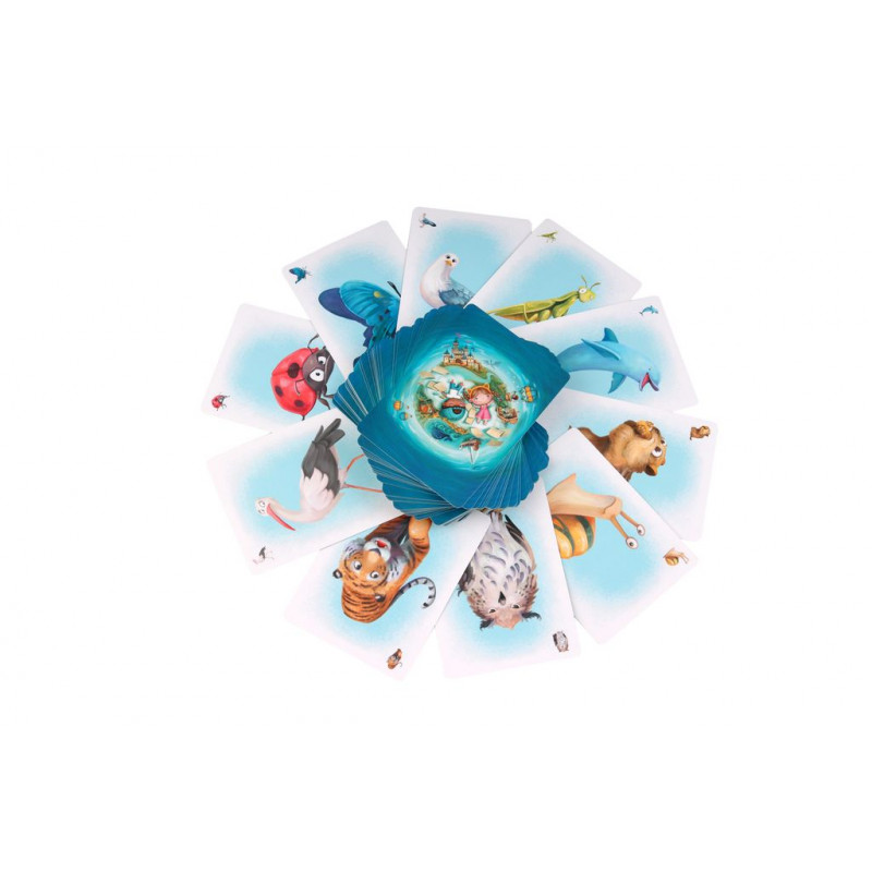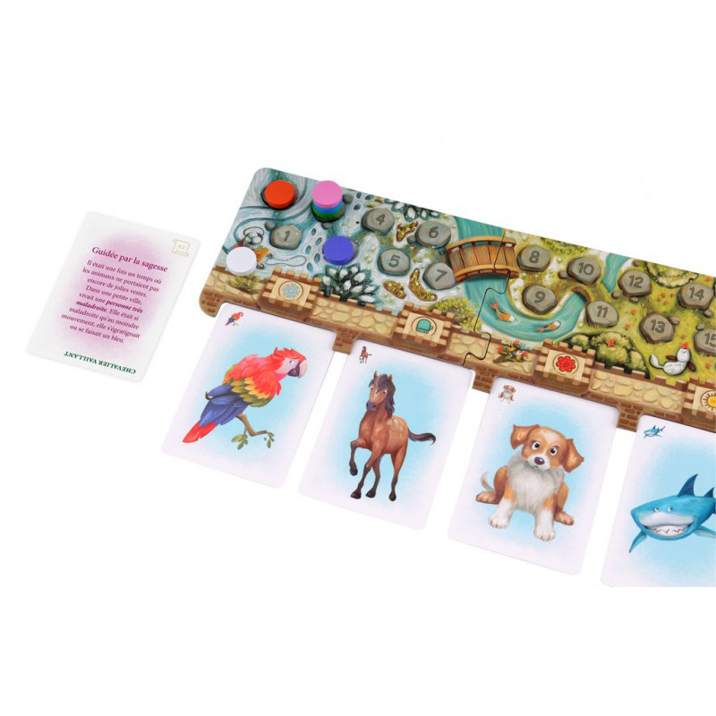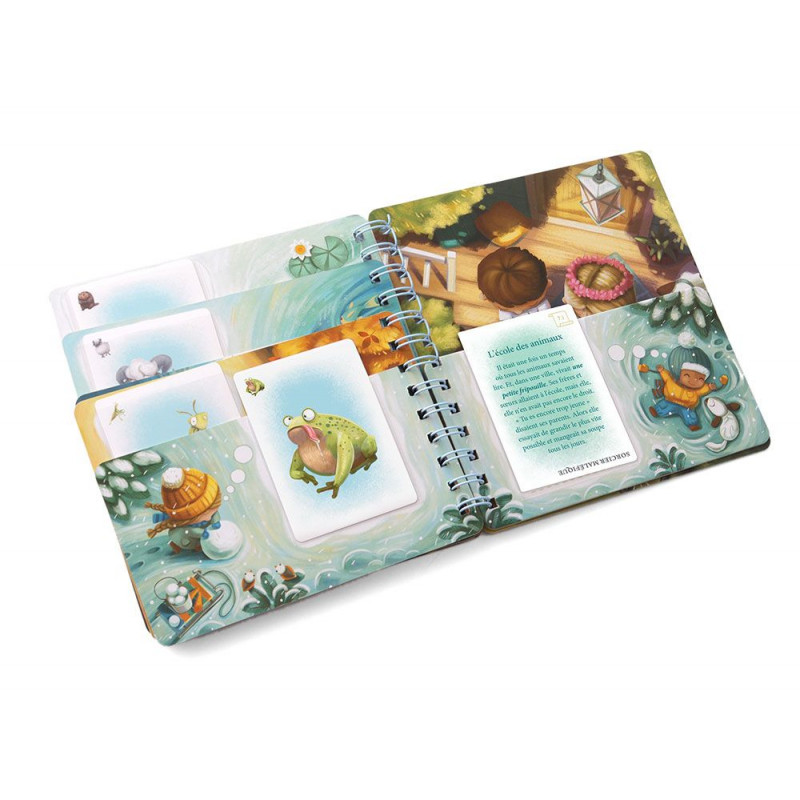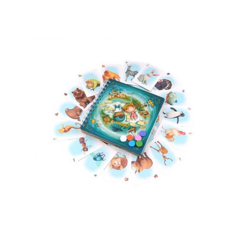 Une réinvention des histoires avant le coucher et un temps de rapprochement avec vos enfants. Contient une plateau de jeu unique en forme de livre. Le narrateur désigné à l’avance lit le début de l’histoire à tous les joueurs puis tourne la page et insère une carte dans la pochette correspondante et lit la suite de l’histoire. Ensuite, tous les joueurs (y compris le narrateur) choisissent dans leur main une carte de personnage qui, à leur avis, correspond le mieux à la description de l’histoire et la posent face cachée sur la table.