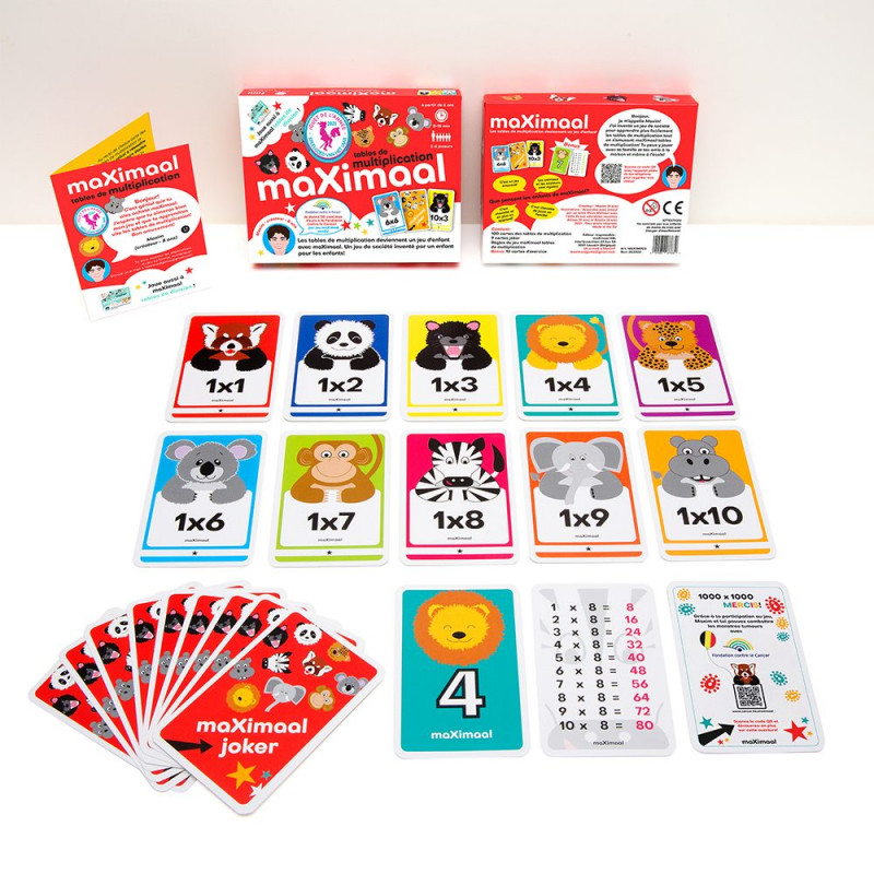 un jeu de cartes pour apprendre et pratiquer les tables de multiplication de manière ludique. L’idée du jeu vient d’un enfant de 8 ans qui voulait rendre la pratique des tables de partage plus amusante !