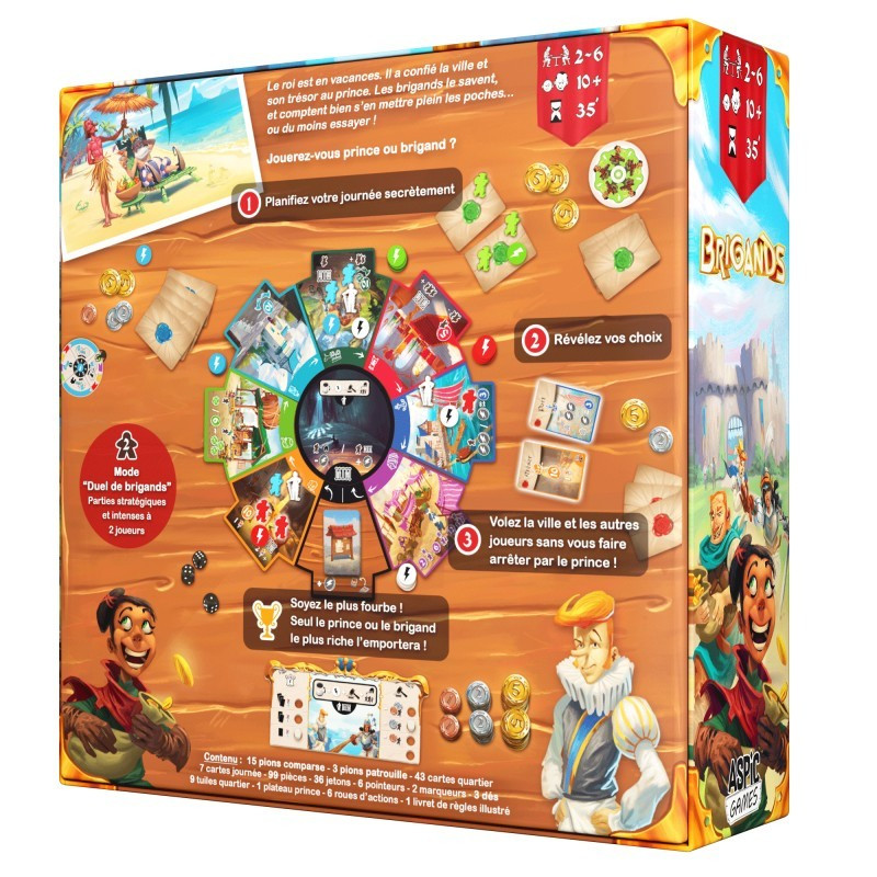 Le roi est en vacances. Il a confié la ville et son trésor au prince. Les brigands le savent et comptent bien s'en mettre plein les poches... ou du moins essayer ! Jouerez-vous le prince ou le brigand ?
