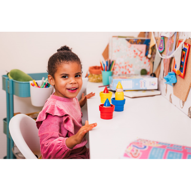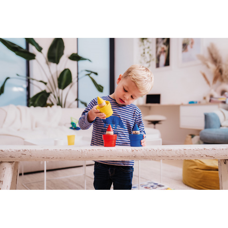 Empilez, cachez, déplacez les petits personnages et leur pot pour résoudre les 48 défis diurnes et nocturnes de ce jeu en bois pensé pour des enfants de 3 à 7 ans.