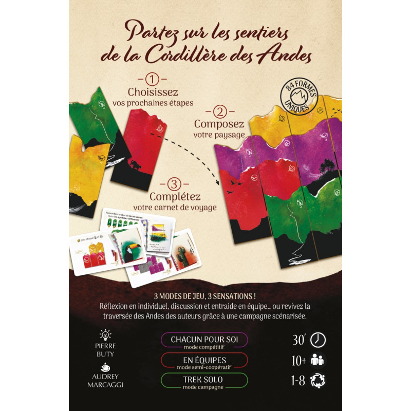 Dans Sierra, composez votre paysage en équipe à l'aide de magnifiques cartes colorées et tentez de marquer le plus de points en fonction de vos objectifs personnels, tout en respectant ceux de vos compagnons de marche. 3 modes de jeu inclus : solo (campagne dédiée), en équipes ou chacun pour soi.