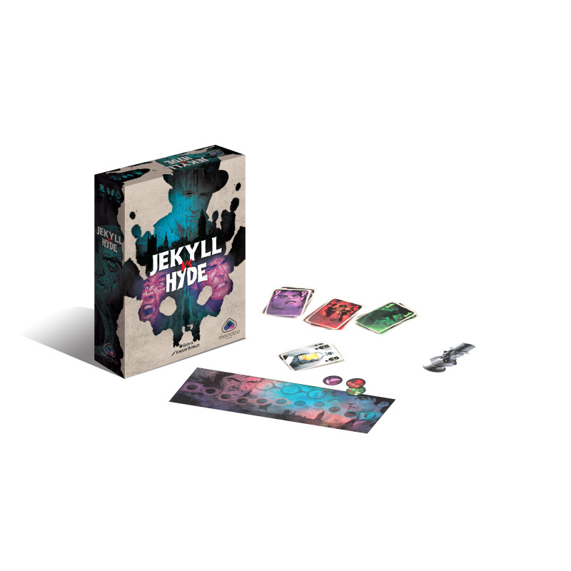 Jekyll vs Hyde est un jeu de plis pour 2 joueurs, inspiré du roman L’Etrange Cas du Docteur Jekyll et de M. Hyde de R L Stevenson. Chaque joueur incarne une facette de la personnalité du personnage principal. Le Dr Jekyll cherche à cacher sa double nature sans perdre la raison, tandis que Mr Hyde, son alter ego, cherche à le dominer et le faire basculer dans les ténèbres.