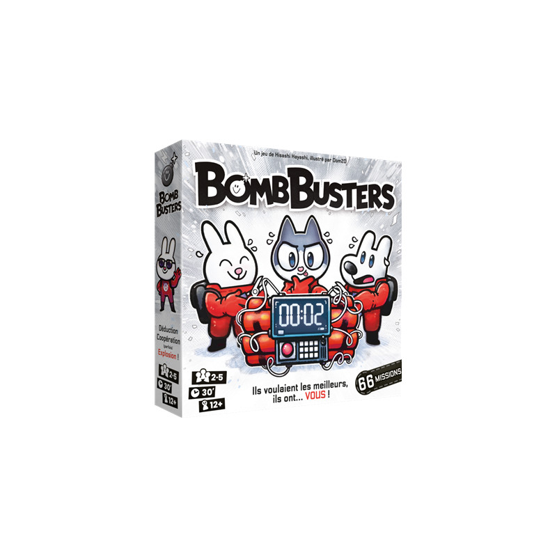 BOMB BUSTERS est un jeu de société coopératif passionnant qui mettra vos compétences de déduction et de communication à l’épreuve. Le principe est simple : vous incarnez une équipe de démineurs et devez désamorcer une bombe en coupant les fils. Cependant, cette simplicité s’efface rapidement pour faire place à des subtilités de plus en plus dures ! Eh oui, car ce jeu vous propose d’augmenter votre niveau : serez-vous une équipe à la hauteur ?