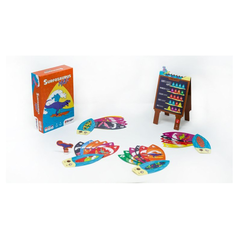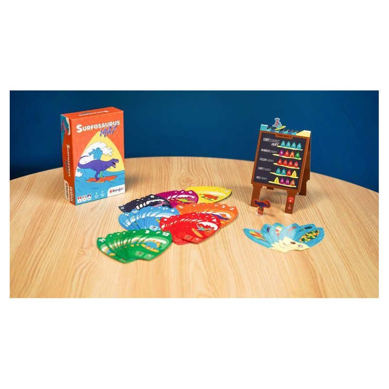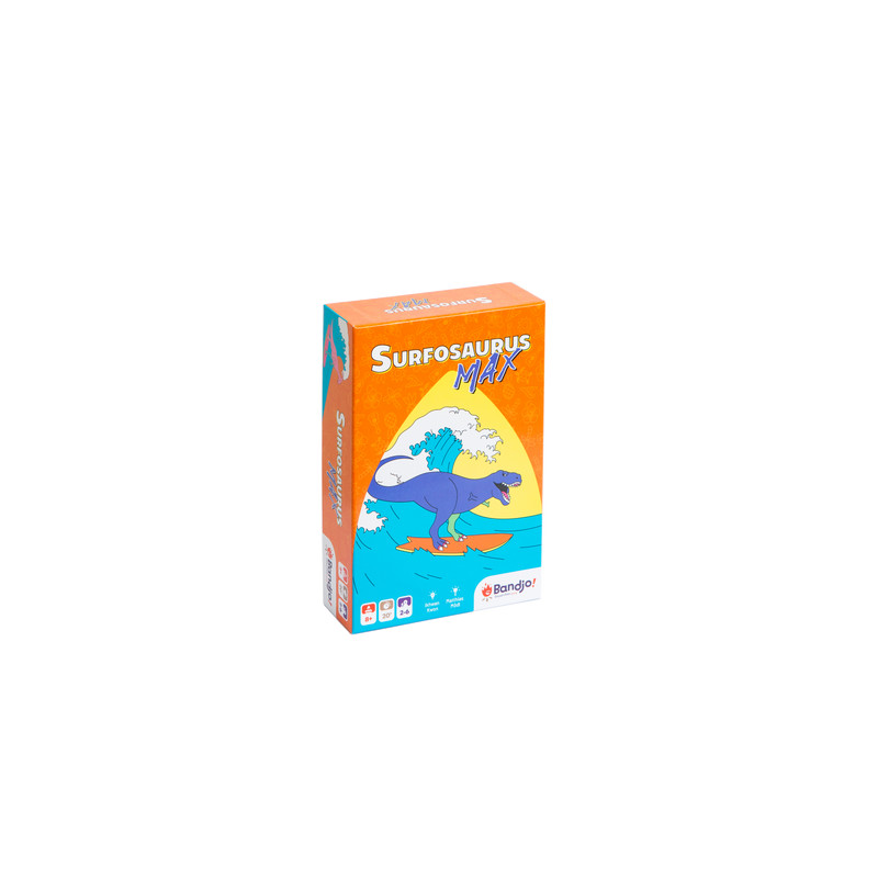 Surfosaurus Max est un jeu semi-coopératif, dans un univers cool avec des dinos surfers.