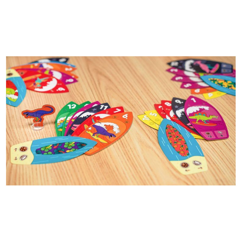Surfosaurus Max est un jeu semi-coopératif avec 7 séries de dinos numérotés de 1 à 12.