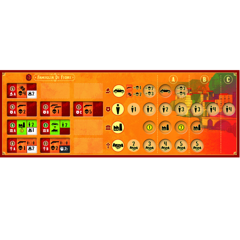 Chaque manche se divise en deux phases : la planification et l’exécution. Lors de la planification, vous développez vos compétences, recrutez des miliciens et préparez vos ordres sur le plateau. Ce n’est qu’ensuite que ces ordres sont révélés et exécutés. Utilisez vos hommes de main pour attaquer ou commettre des attentats afin de dominer le plus de régions possible. Un système de combat simple et innovant transforme chaque affrontement en duel psychologique. Seule l’équipe qui saura le mieux combiner les points forts des familles qui la composent remportera la victoire.