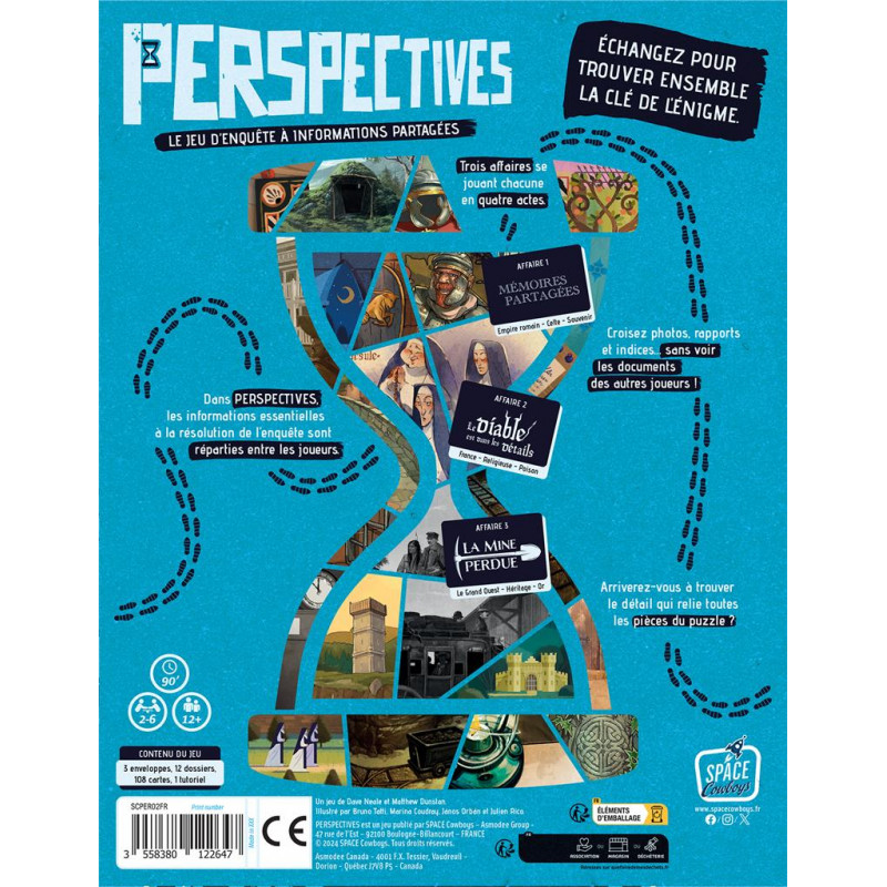 Jouez les détectives et résolvez les affaires en coopérant… dans les limites imposées par le jeu. Dans Perspectives, les enquêtes se résolvent grâce à des photographies, rapports et autres indices dessinés sur des cartes. Mais chaque joueur possède des éléments et il lui est strictement interdit de les montrer aux autres. À vous de discuter, d’échanger, d’expliquer, de décrire, afin de relier les éléments entre eux et de percer les mystères de ces trois nouvelles affaires.