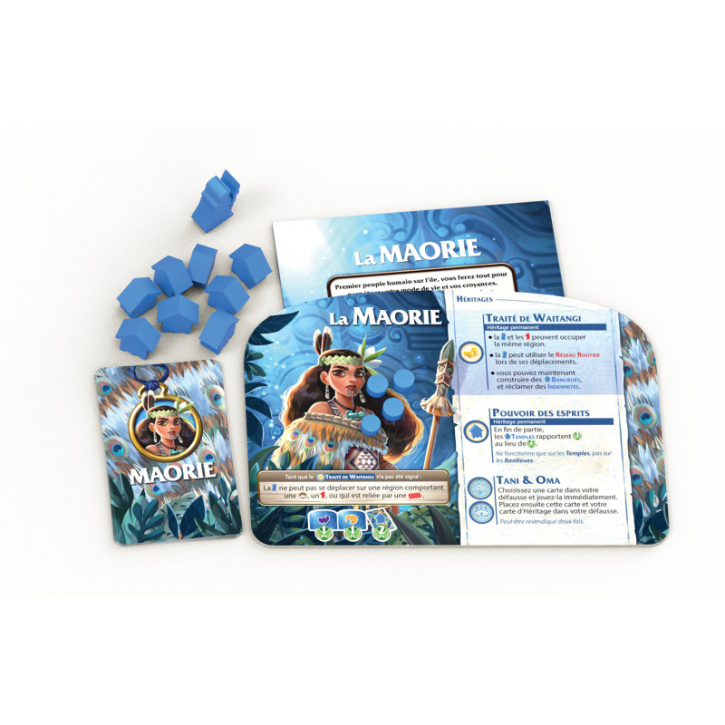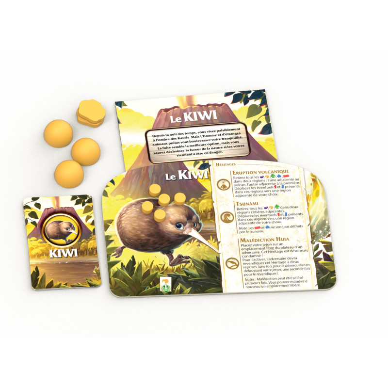 Dans Kauri, chaque joueur incarne l’une des 4 factions proposées et va tenter de se faire une place dans l’histoire.