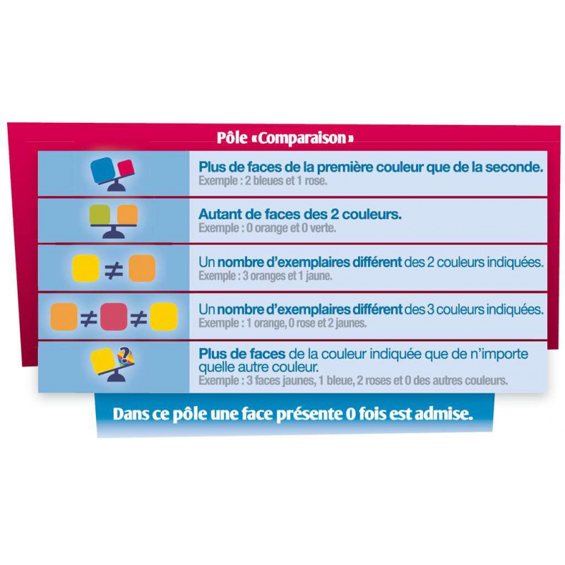 Cependant, vous ne pouvez valider vos points qu'à la seule condition d'avoir rempli votre contrat. Un contrat ? Oui : avoir exactement une face rouge, plus de faces bleus que de jaunes, aucune couleur en 3 exemplaires, etc....