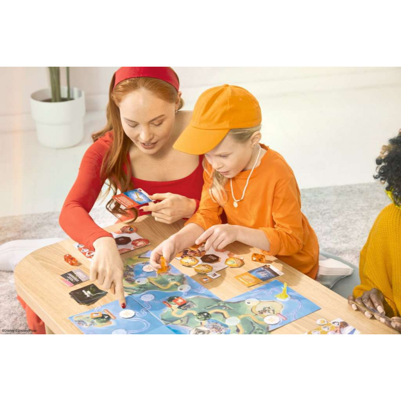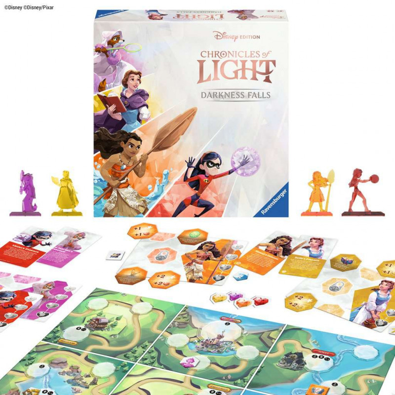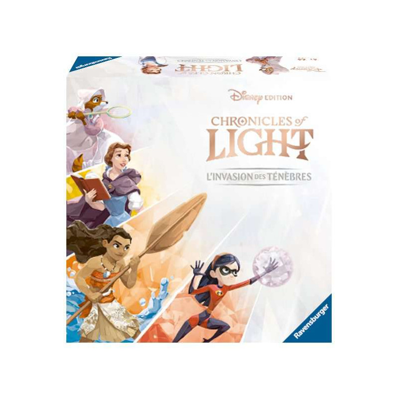 Incarnez une héroïne parmi Belle, Vaiana, Violette ou Belle Marianne pour protéger le Royaume contre les ténèbres. À chaque tour, coopérez ensemble pour accomplir vos quêtes tout en combattant les ténèbres, mais attention, les ténèbres s'abattent à chaque tour. Vous gagnerez ou perdrez ensemble face aux ténèbres. Choisissez astucieusement vos six actions à chaque tour pour parvenir à vaincre les ténèbres et fermer le vortex.Réalisez votre quête pour débloquer l'action spéciale de votre héroïne. Le jeu offre une grande rejouabilité avec les différentes quêtes des héroïnes, elles en ont quatre chacune et les placements aléatoires des tuiles royaume, vous pouvez former le royaume de votre choix. Le choix de vos quêtes et la forme de votre royaume rendra votre partie plus ou moins compliquée, à vous de moduler la difficulté souhaitée. Parviendrez-vous à vaincre les ténèbres et à sauver le royaume. Le jeu comprend quatre magnifiques figurines translucides. Un jeu accessible et familial pour toute la famille dès 8 ans.