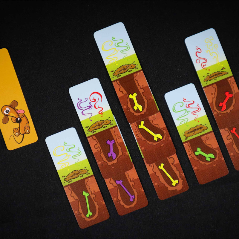 Chaque carte de cour a une odeur avec 2 couleurs. L'os situé sur le côté opposé de la carte de jardin correspond à l'une des couleurs de l'odeur. Cela aidera les joueurs à déterminer la couleur de l'os qui pourrait être déterré si cette carte de jardin est sélectionnée pour creuser.