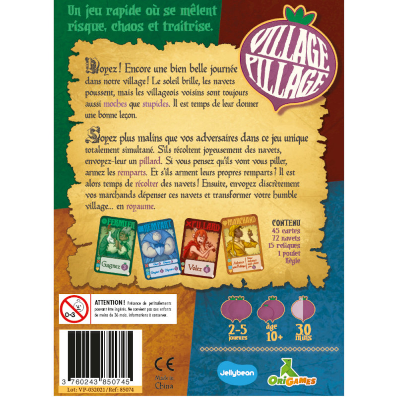 Avec les mêmes villageois que les autres joueurs, vous allez devoir faire la différence et jouer habilement contre vos voisins de table. Le Paysan récolte des navets, le Pillard vole le Paysan et le Marchand, le Rempart protège du Pillard et le marchand recrute ou achète des reliques. Au cours de la partie, vous pourrez recruter de nouveaux villageois pour profiter d’effets plus puissants.