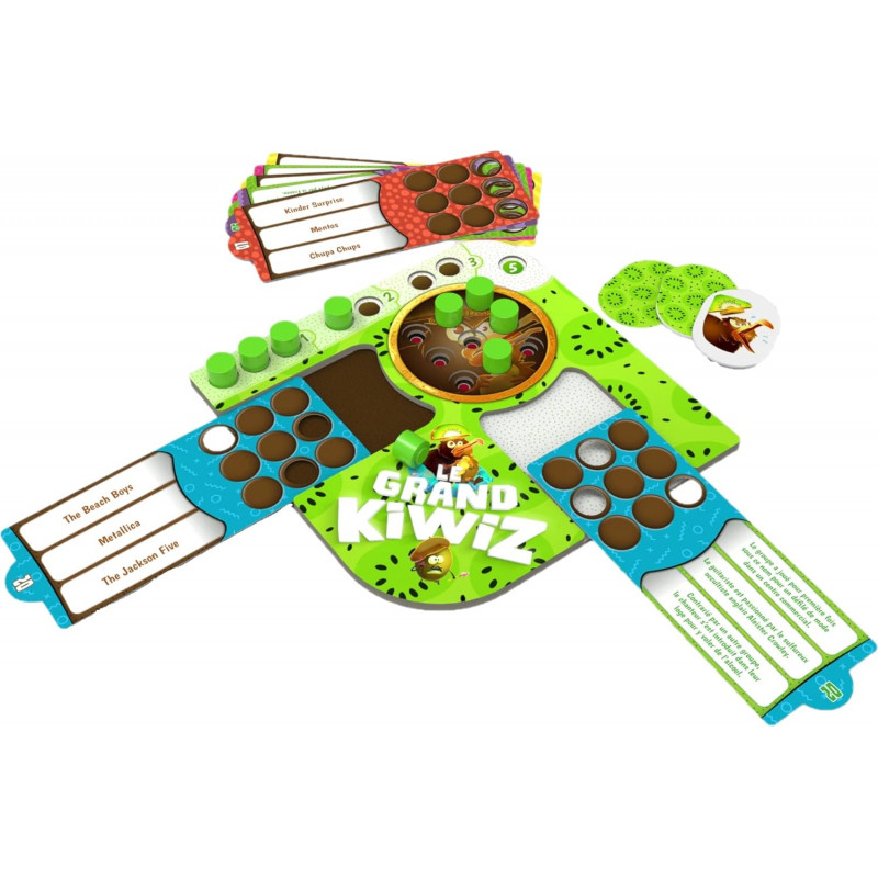Contenu : 156 fiches Question, 1 plateau de jeu, 9 jetons Kiwiz, 1 bloc de score, 1 livret de règles