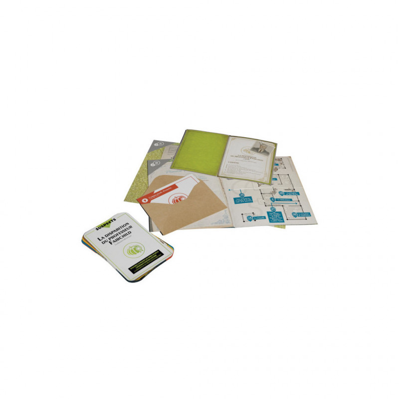 contenu : 50 grandes cartes, 1 fiche introduction, 2 plans et documents, 1 enveloppe solution, 1 règle du jeu