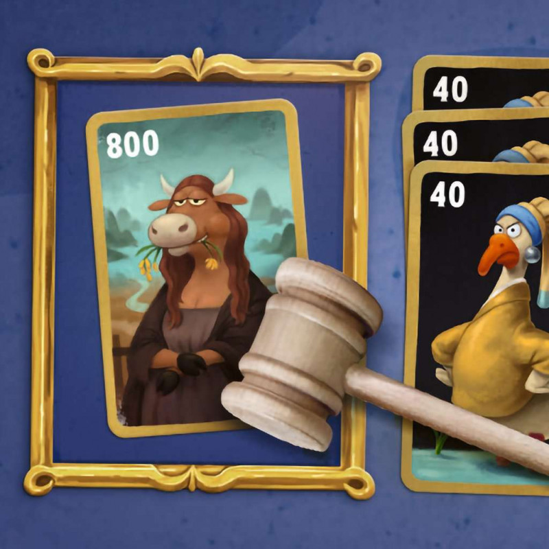 Emparez-vous du marteau en bois et enflammez les ventes aux enchères ! Pour l’occasion, les animaux prennent les traits de tableaux iconiques. Faites monter les enchères pour remporter un maximum d'argent ou utilisé votre droit de préemptions pour surprendre vos adversaires et remporter les animaux.