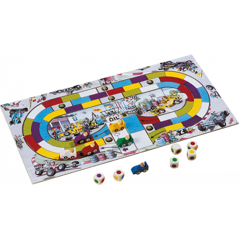 Prenez votre bolide et lancez les six dés aux faces colorées. Choisissez ensuite dans quel ordre les utiliser en fonction de la couleur des cases situées devant votre véhicule sur le circuit. Foncez d’autant de cases que possible pour remporter la course. Changez de voie et évitez les cases obstacles, et vous foncerez vers la victoire !