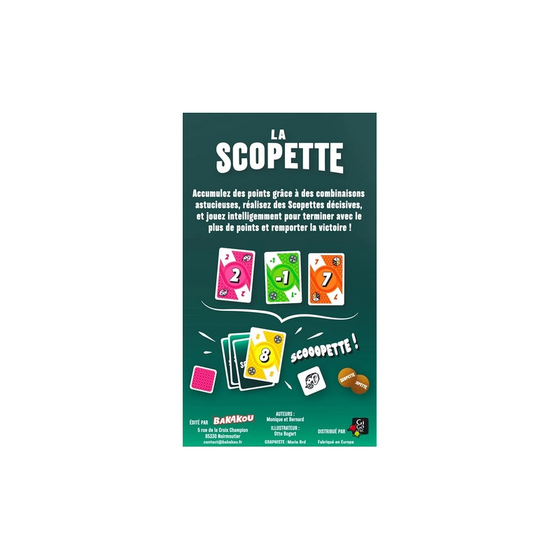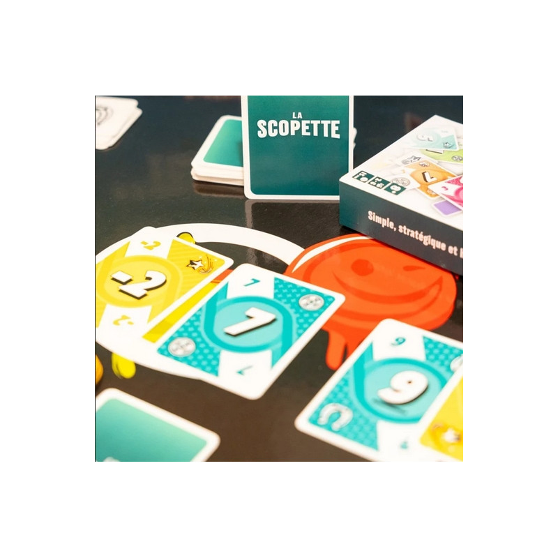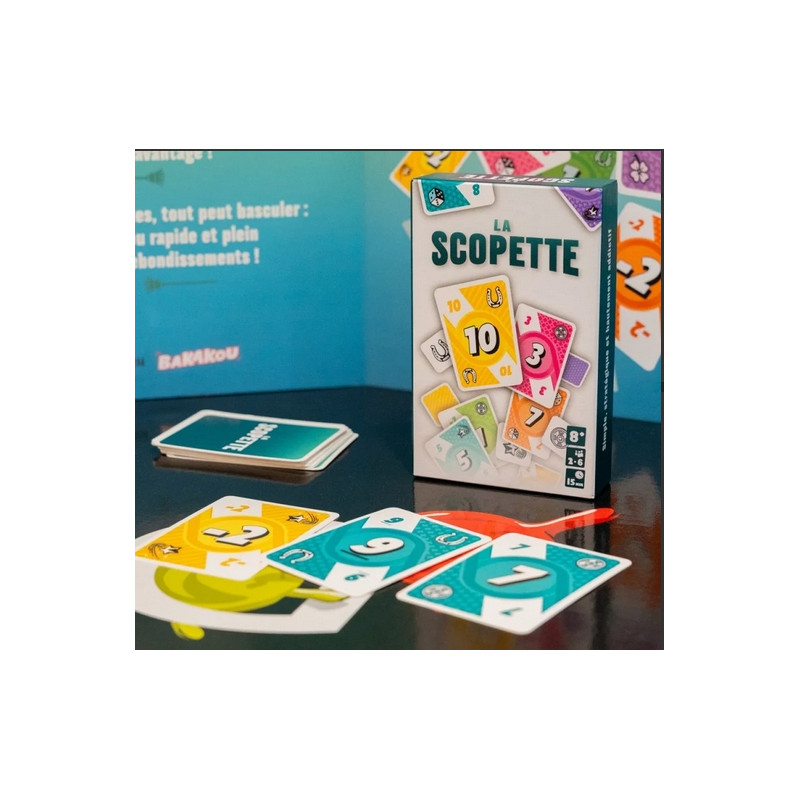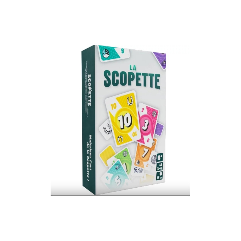 Videz la table ou votre main pour décrocher la Scopette et prendre l’avantage ! En 15 minutes, tout peut basculer : un jeu rapide et plein de rebondissements !