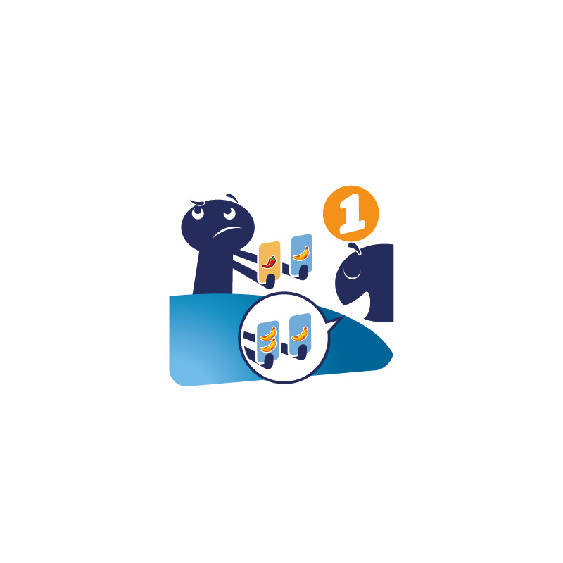 Des bananes mûres, des bananes vertes ou des des noix de coco : que peut-il bien y avoir sur les deux cartes que vous montrez à votre voisin ? Libre à vous de croire ses indications ! Mais arrangez-vous pour garder la meilleure des deux et lui refiler la moins bonne !