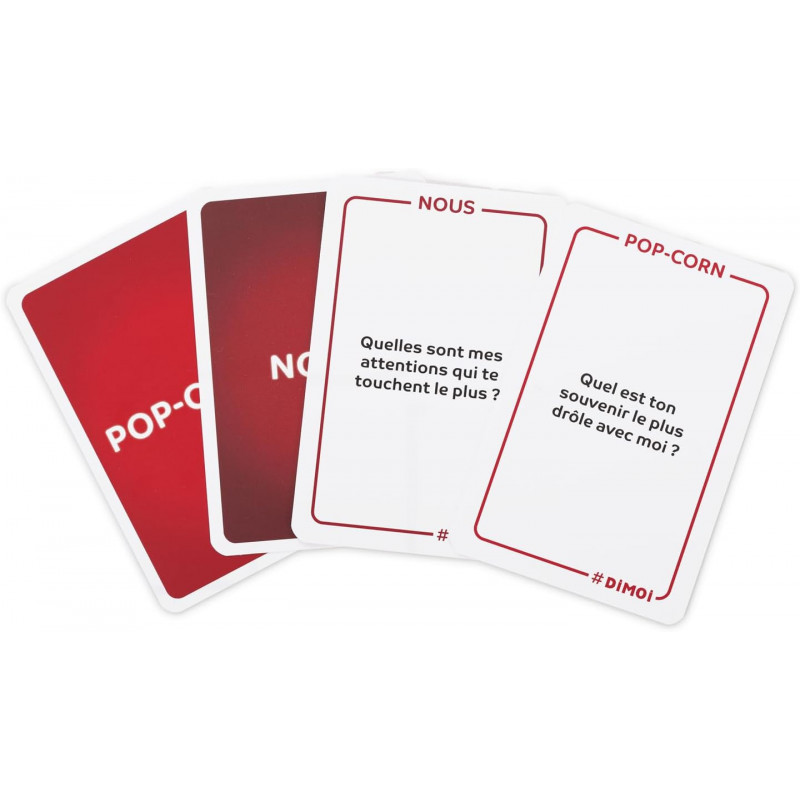 Le jeu est composé de 4 catégories : Nous, Pop-corn, For intérieur, Torride. Mélangez les cartes ou choisissez une catégorie selon votre humeur de jeu !