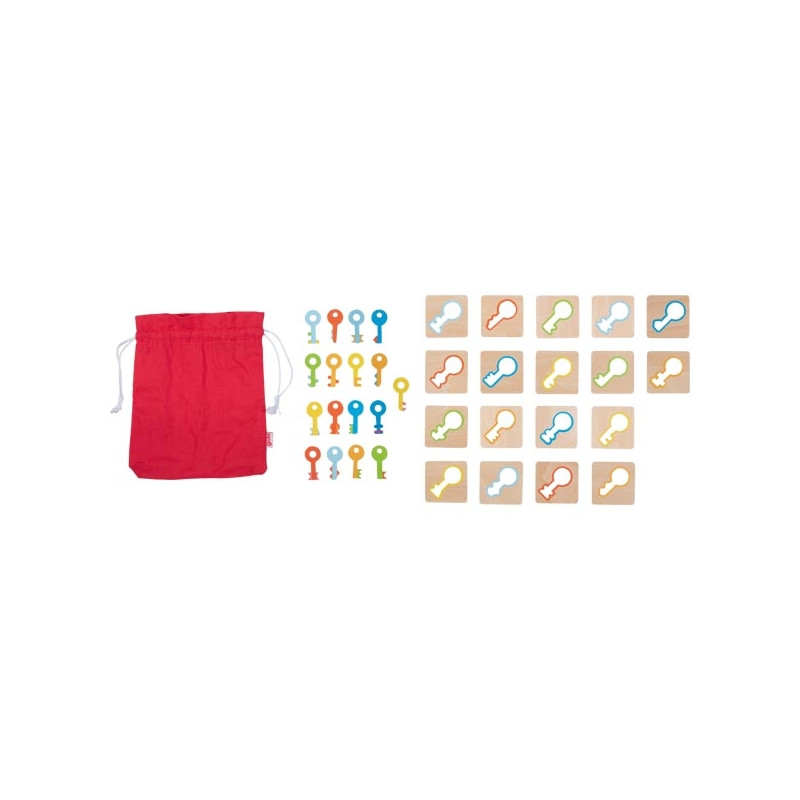 La vitesse est la clé du succès dans ce mémo en bois. Mais attention, les joueurs doivent rester bien concentrés pour gagner. Chacune des 18 clés ne peut rentrer que dans un seul des 18 cadres. Une fois la clé sortie du sac, qui saura montrer du doigt le cadre correspondant ? Les couleurs seront vos alliées pour résoudre les énigmes.