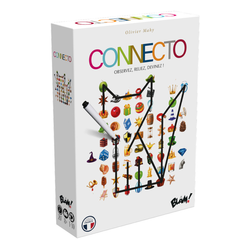 Retrouvez et reliez sur votre plateau les icônes de la carte Enigme et soyez le plus rapide à deviner ce que vous dessinez ! Avec ses 184 défis amusants et ses 4 modes de jeu, Connecto offre des challenges variés et la possibilité de réunir jusqu'à 10 joueurs.