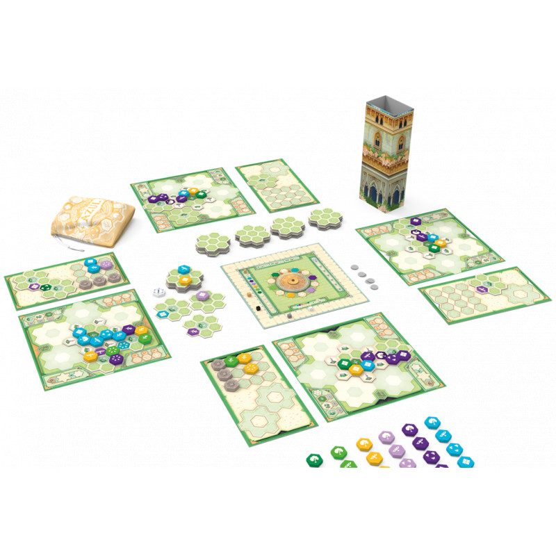 En utilisant l’innovatrice mécanique de sélection emblématique de la collection des jeux Azul, les joueurs doivent choisir judicieusement des tuiles colorées pour décorer leur jardin.
