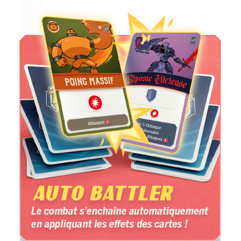 Composez votre duo ultime de combattants et développez la synergie ultime combinant leurs 2 decks uniques ! Commencez avec un deck de 2 cartes seulement. Le combat se déroule automatiquement ; dépilez vos cartes en appliquant leurs effets.