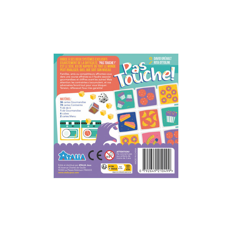Un jeu de rapidité malin, où vitesse et observation sont clés… mais pas uniquement. Grâce à un système ingénieux de contraintes ajustables et évolutives, Pas Touche ! met tous les joueurs sur un pied d’égalité, peu importe leur niveau de rapidité. Idéal pour jouer entre générations ou profils différents. La