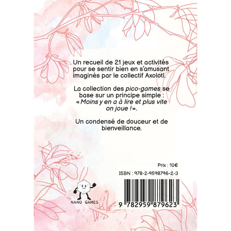 Un recueil de 21 jeux et activités pour se sentir bien en s’amusant imaginés par le collectif Axolotl. La collection des pico-games se base sur un principe simple : « Moins y en a à lire et plus vite on joue ! ». Un condensé de douceur et de bienveillance.