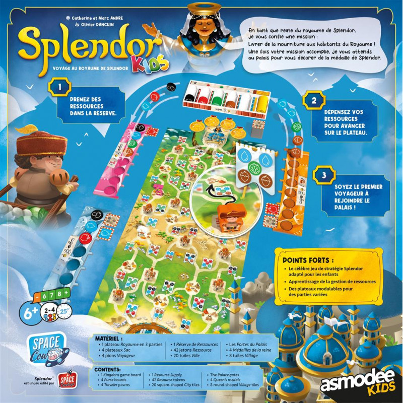 Splendor Kids vous emmène dans une aventure royale accessible dès 6 ans ! La Reine vous a confié une mission de la plus haute importance : livrer des ressources aux habitants du royaume. Seuls les plus malins et rapides réussiront leur mission et atteindront le palais à temps pour recevoir la médaille de Splendor.