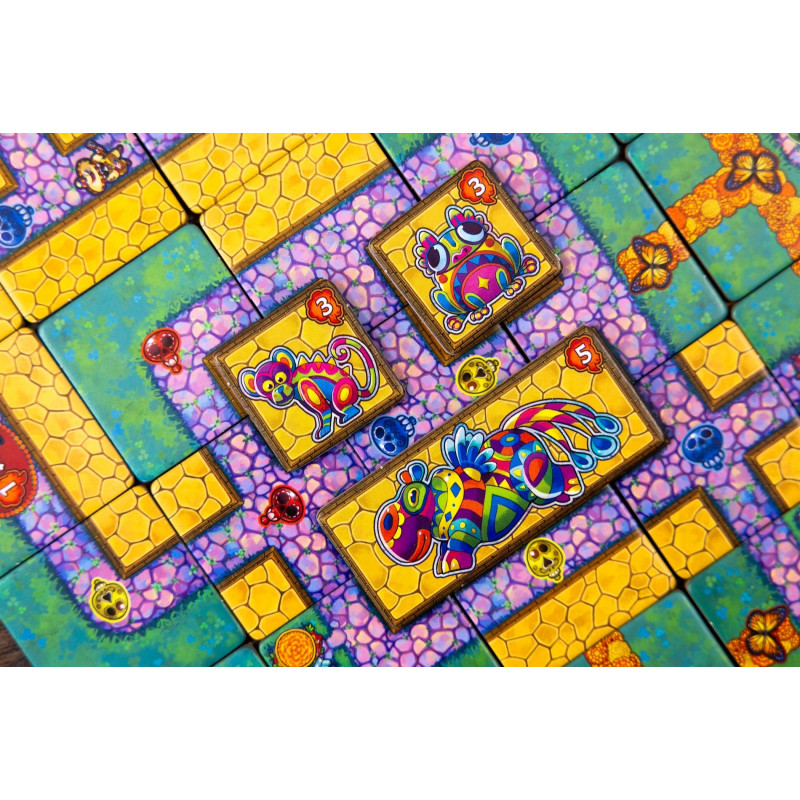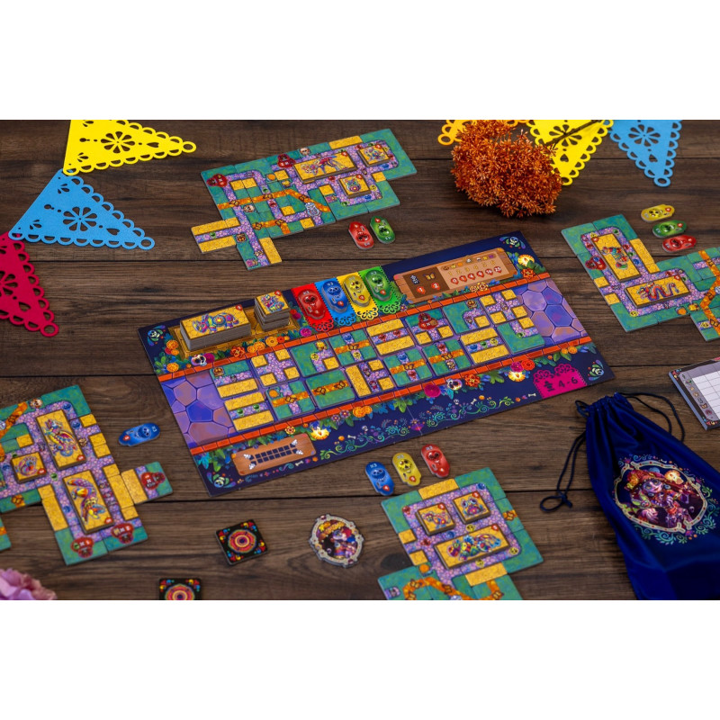 Créez le plus beau Village pour célébrer le Día de los Muertos en collectant ballons, chimères, visiteurs et papillons à travers un astucieux placement de tuiles. Le joueur ou la joueuse ayant accumulé le plus de points de victoire l’emporte.