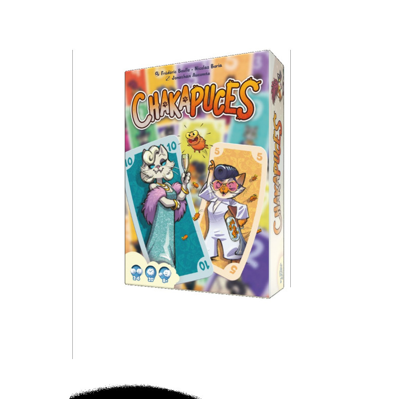 Plongez dans l’ambiance déjantée de Chakapuces, un jeu rapide, drôle et tactique où les chats chic affrontent un invité surprise : le terrible Chakapuces ! À chaque tour, jouez vos cartes pour créer des suites et vous débarrasser de vos Puces, ou formez des colonnes pour gagner des cartes précieuses. Mais attention aux Chakapuces, qui viennent semer la pagaille chez vos adversaires ! Bluff, timing et coups tordus sont au cœur de cette expérience fun et interactive. Accessible et malin, Chakapuces promet des parties rythmées et pleines de rebondissements pour toute la famille ou entre amis. Attention, Chat va piquer !