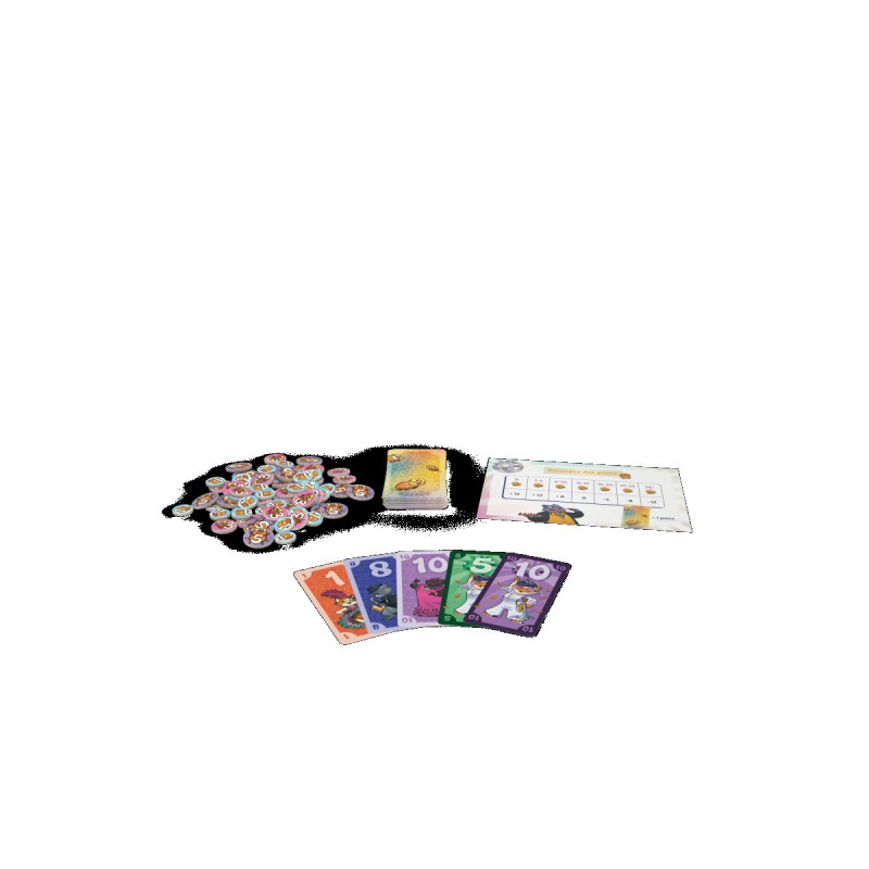Jouez vos cartes astucieusement pour récupérer des points avec des cartes Chats, vous débarrasser de vos jetons Puces ou en redonner à vos adversaires. Dès qu’un joueur ou une joueuse n’a plus de Puces ou que la pioche est vide, la partie prend fin. Ayez le plus de points pour remporter la partie.