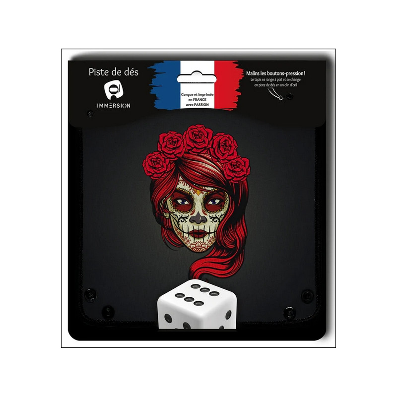 Les boutons pression transforment la piste de dés en quelques secondes et facilitent le rangement à plat ou roulé.