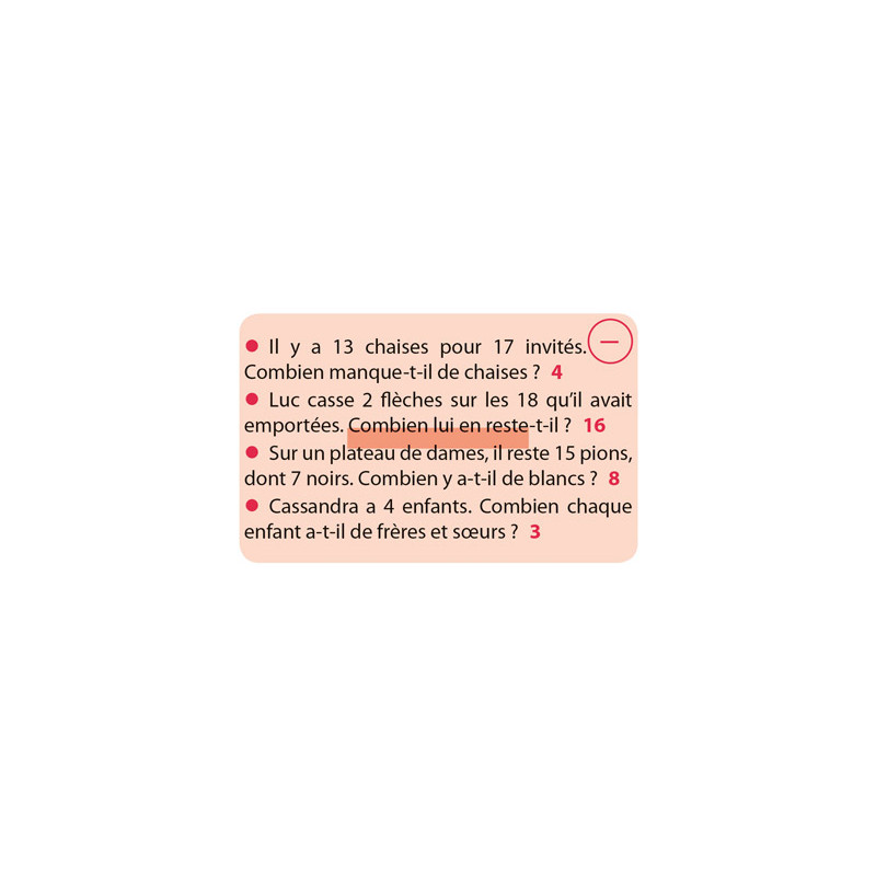 Le jeu contient 110 cartes : 72 cartes Énigmes (soit 330 énigmes), 18 cartes Nombre, 20 cartes Calcul.