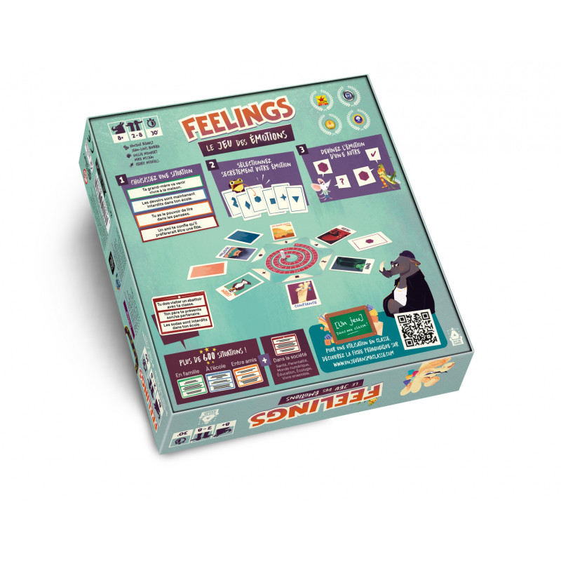 Avec quatre déclinaisons de situations adaptées, Feelings se joue tant en famille, à l’école, entre amis que dans un cadre professionnel lié à l’enfance ou à l’adolescence.